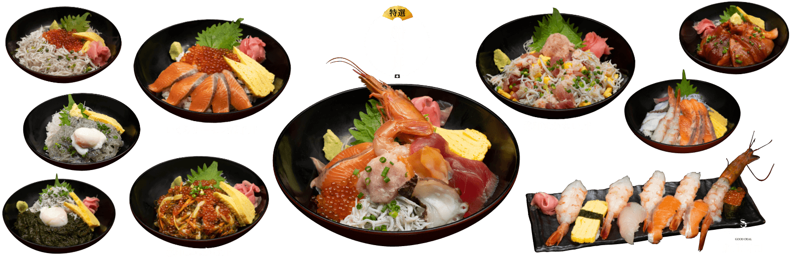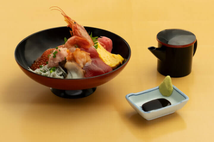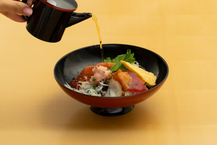 一度で二度おいしいすべての丼は最後に鯛のお出汁をかけて、お召し上がりください。
