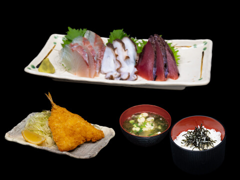 地魚三点盛 鯵フライ定食